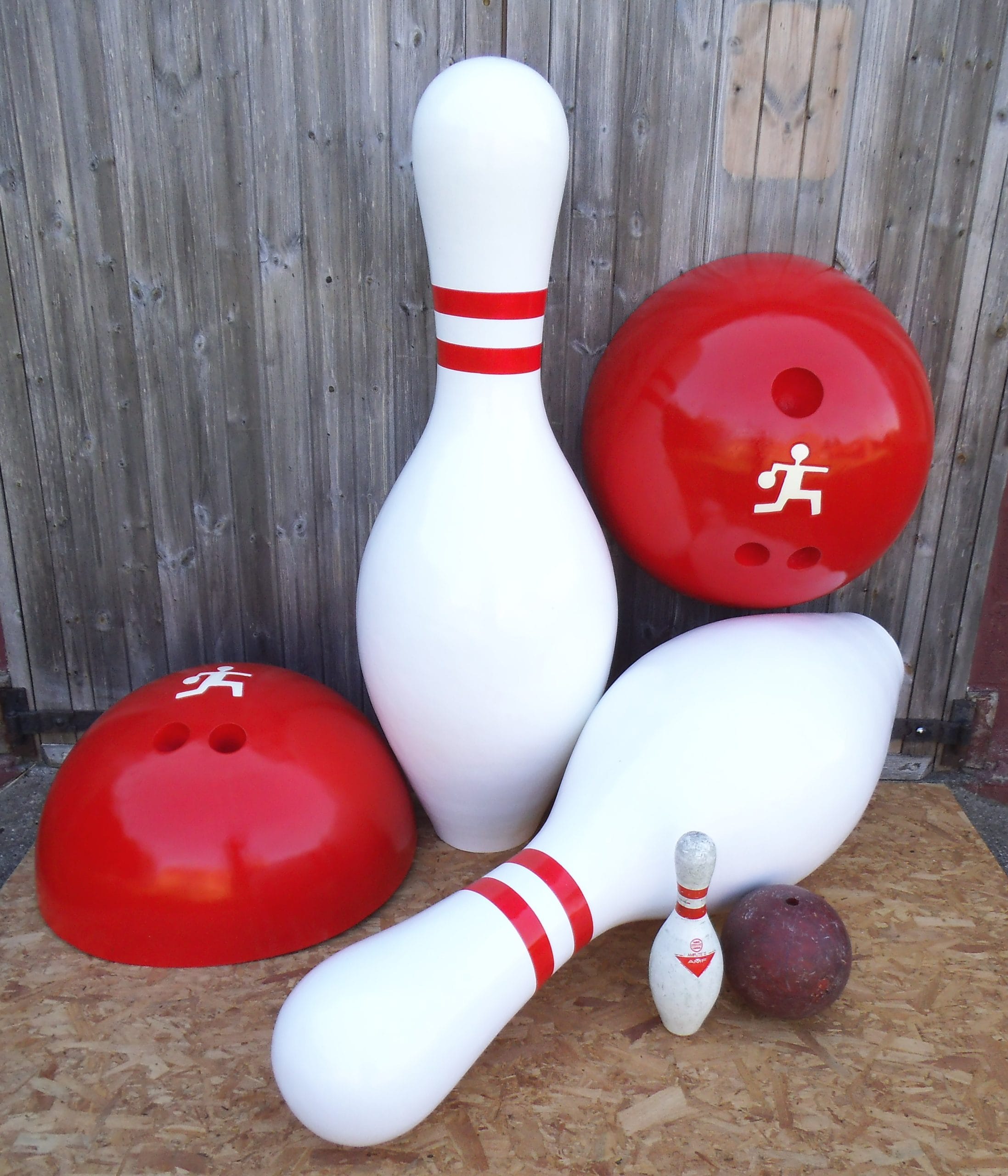 The Pins are 1.5 metres tall and the Balls are 75cm across.